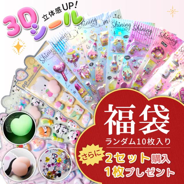 【1セット10枚入り】【2セット購入で1枚プレゼント】シール 福袋 3Dシール 立体シール 交換 シャカシャカ 可愛い ステッカー ぷくぷくシール スパンコール付き キラキラ 子供 女の子 プレゼント おしり お尻 ぷにぷに キャラクター おはじきシール 男の子 女の子 即納
