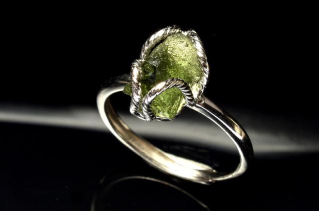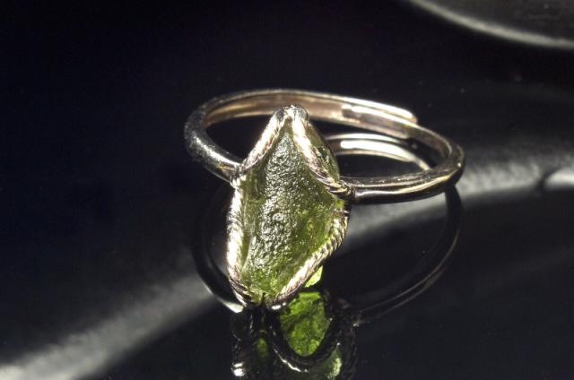 【1点物】シルバー925◇入手困難 モルダバイト 12x6mm 原石 指輪リング(サイズ調整可) 金運・仕事運【ネコポス送料無料】_PC9825