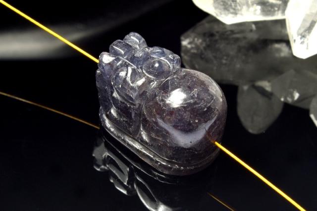 【1点物】アイオライトサンストーン 19x12mm 貔貅(通し穴) ビーズ 恋愛運・金運・仕事運_PC9868