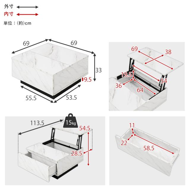 ■サイズ:(約)幅69×奥行69×高さ33cm■素材:主材:プリント紙化粧パーティクルボード、天板:合成樹脂化粧パーティクルボード(メラミン樹脂)