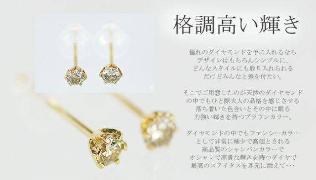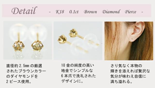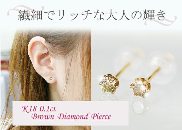 ピアス ブラウン ダイヤモンド 0.1ct 18金 ホワイトゴールド ピンクゴールド K18 WG PG 一粒 1粒 ソリティア 6本爪 6爪 レディース アクセサリー ジュエリー ギフト 113418 ダイヤ