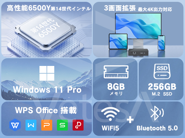 ミニPC Windows11 Pro 小型 デスクトップパソコン 第14世代 8GB 256GB Office付き 新品 3画面同時出力 4K 静音 高性能 軽量 6500Y Wi-Fi6 2026年 新モデル デスクトップ PC ミニパソコン 本体 micro pc 1年保証