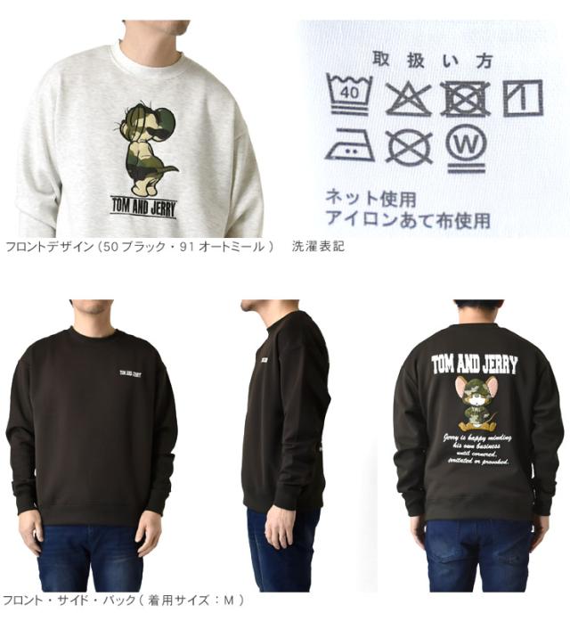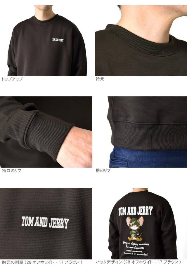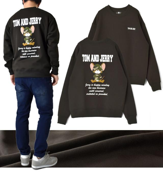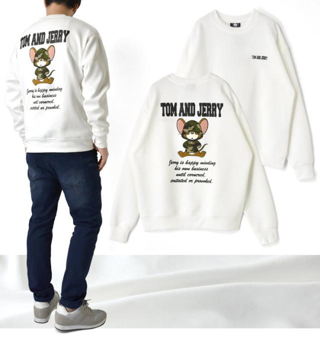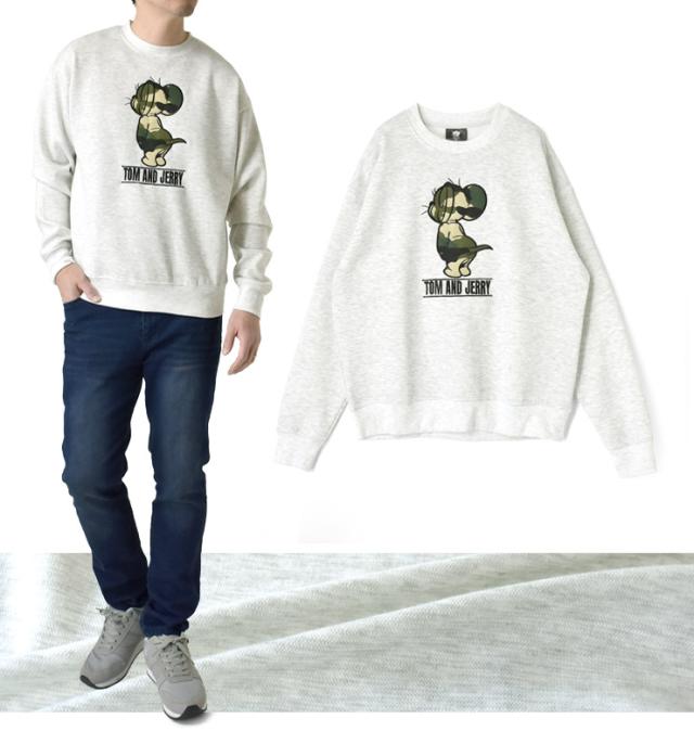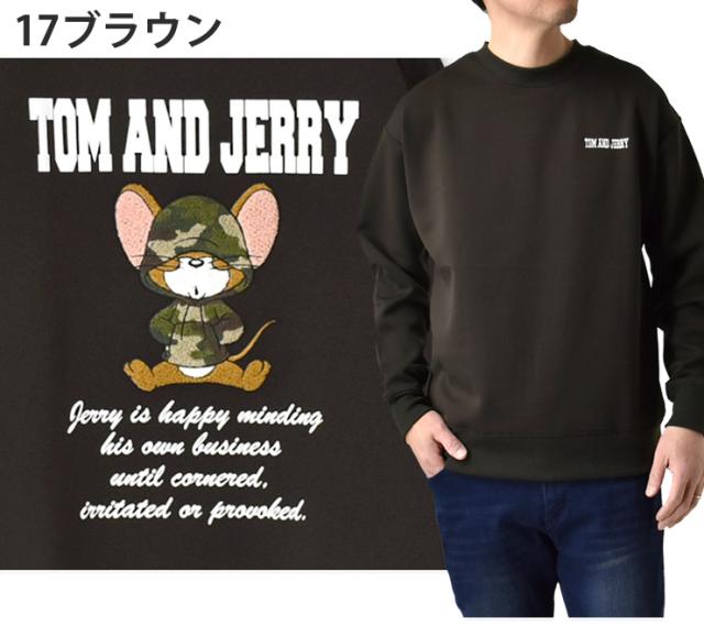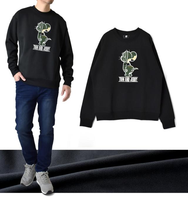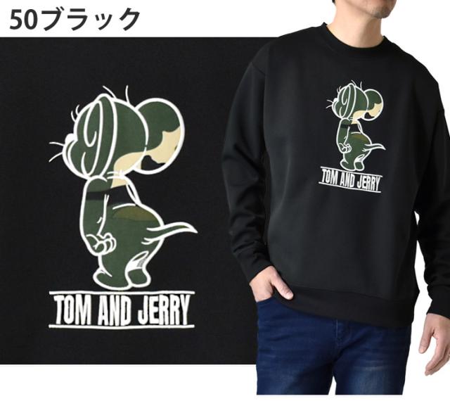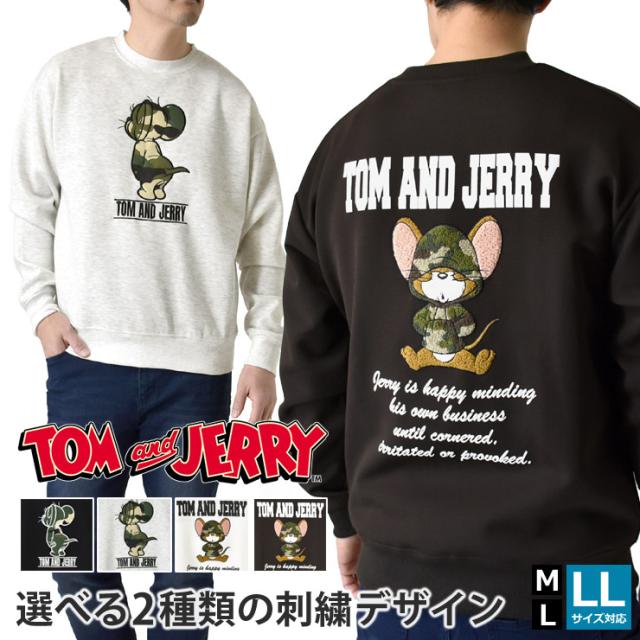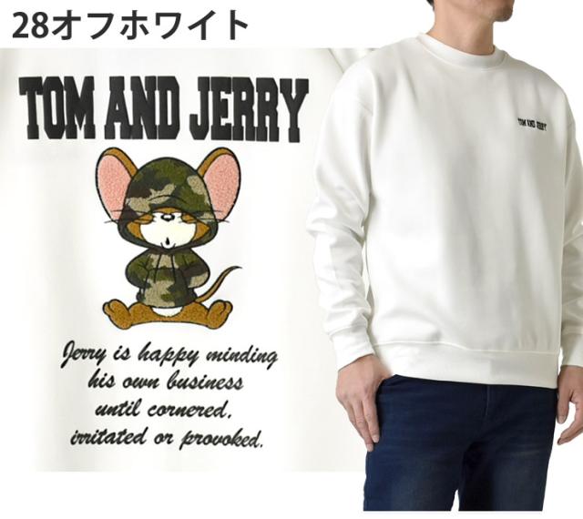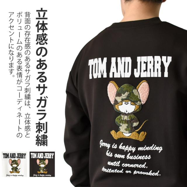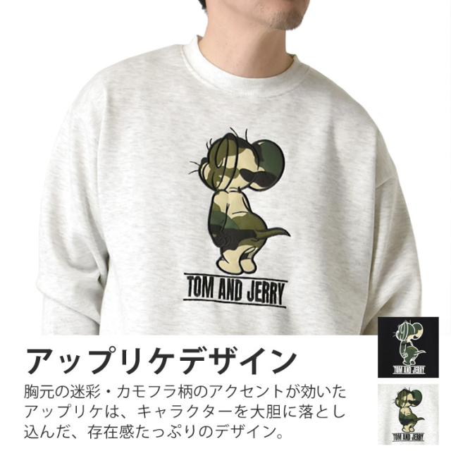 サガラ刺繍 トムとジェリー スウェット メンズ ダンボールニット トレーナー 選べる2柄 トム ジェリー アップリケ 迷彩 カモフラ M L LL キャラクター ストリート 春 秋 冬【H4O】【送料無料】【ゆうパケット】 冬新作
