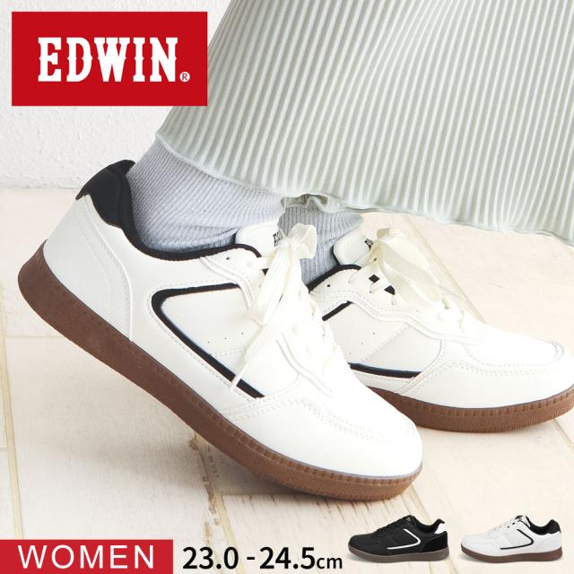EDWIN エドウィン スニーカー レディース 黒 ローカット 軽い 軽量 歩きやすい 疲れにくい 履きやすい クッション インソール おしゃれ かわいい シンプル カジュアル ファッション 通勤 通学 旅行 学生 定番 お出かけ 靴 シューズ ブラック アイボリー EDW-4381