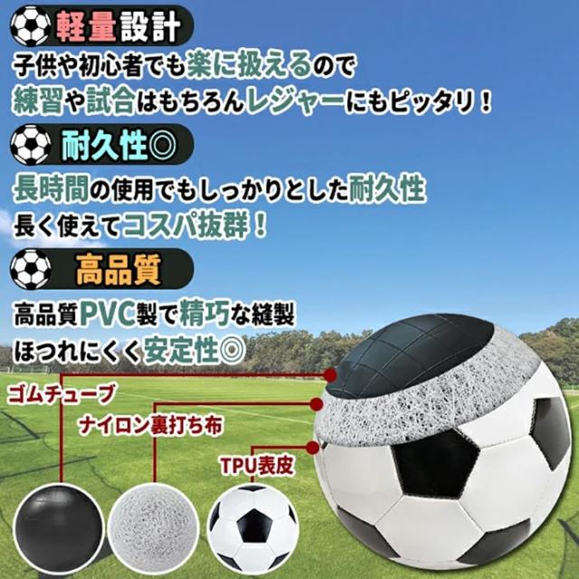 サッカーボール 3号 4号 5号 軽量 黒 学生用 練習用 トレーニング レジャー ファミリー スポーツ 球 ボール 空気入れ 子供用 小学生 ネット サッカー 3号球 4号球 5号球