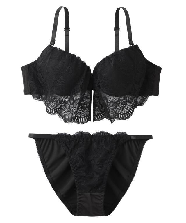 ブラ上辺からカバーレースをたっぷりふんわりと被せたブラセット。 ヴェールの様に被せたレースがラグジュアリーな1着。 脇ストラップショーツはセクシーさをプラス。 下厚モールドカップで美しいバストラインヘ。 詳しいショーツサイズについては詳細画像内サイズ表を参考にお持ちのショーツと比較してみてください。