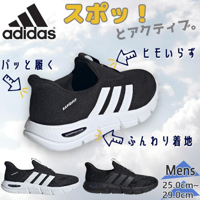 アディダス メンズ CF FLEX LOUNGE RAPIDFIT ラピッドフィット スニーカー 靴 シューズ スリッポン 日本ウォーキング協会公認 ブラック 黒 送料無料 adidas HQ2568 HQ2569
