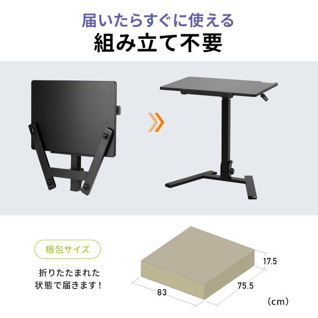 ⇒ご購入の前にご確認下さい完成品でお届けするので組み立て不要。コンパクトに折りたたんで収納することができるガス圧昇降デスク。天板の高さは無段階で昇降でき、チルト天板で角度の調整もできるので、様々なシーンや姿勢に合わせて調整ができるスタンディングデスク。ブラック。【WEB限定商品】