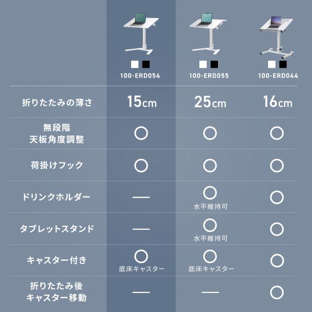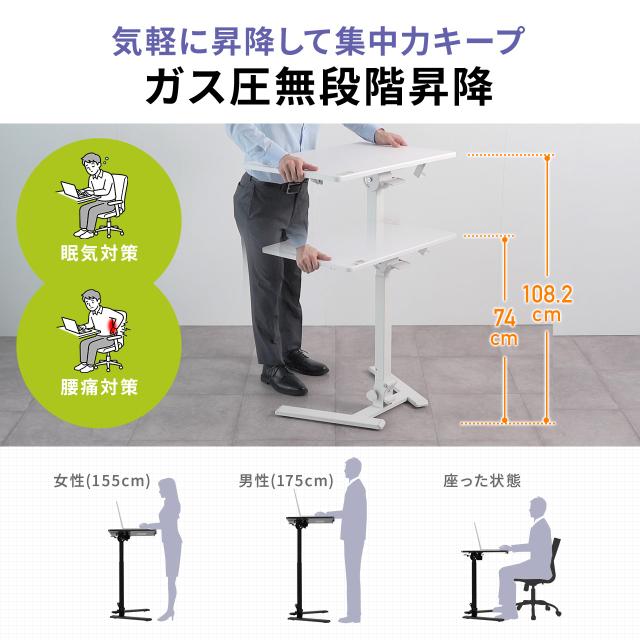 スタンディングデスク 昇降デスク ガス圧デスク 折りたたみテーブル 完成品出荷 落下防止ストッパー 天板角度調整可能 無段階調節 フック付き 薄さ15cm ブラック ホワイト[100-ERD054]