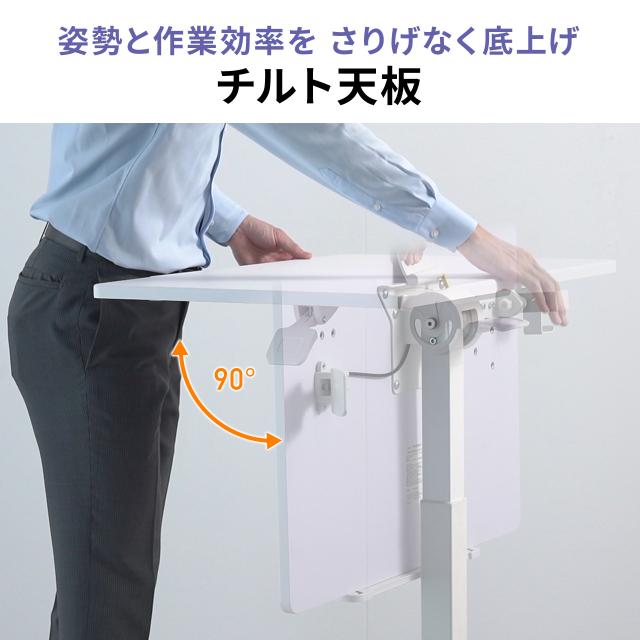 ●天板は90°まで無段階調整ができるチルト機能付き。