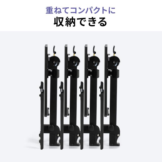 ●脚フレームを開いた状態でもスタッキングさせて置いておくことができます。