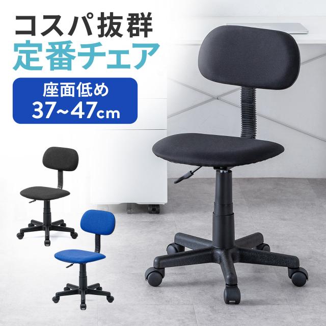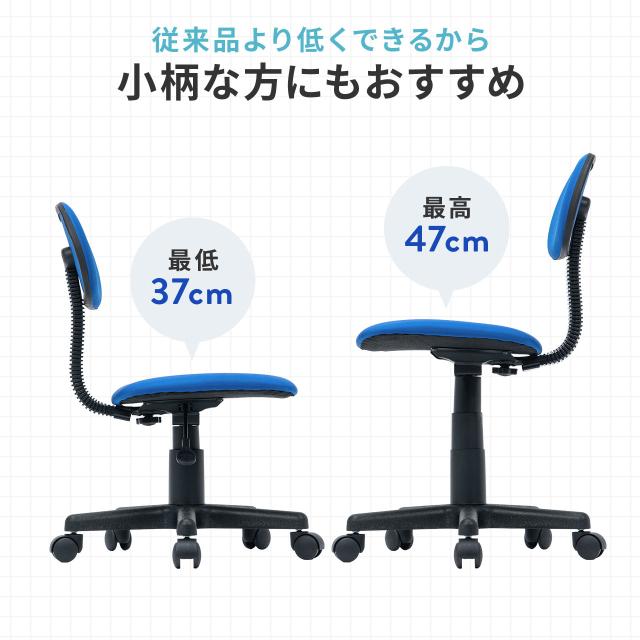 ●レバー操作で高さ調整が可能なガス圧式です。体格やデスクに合わせて最適な姿勢を保てます。●座面高375〜470mmの低座面設計です。足裏がしっかり床につき、安定した姿勢で座れます。