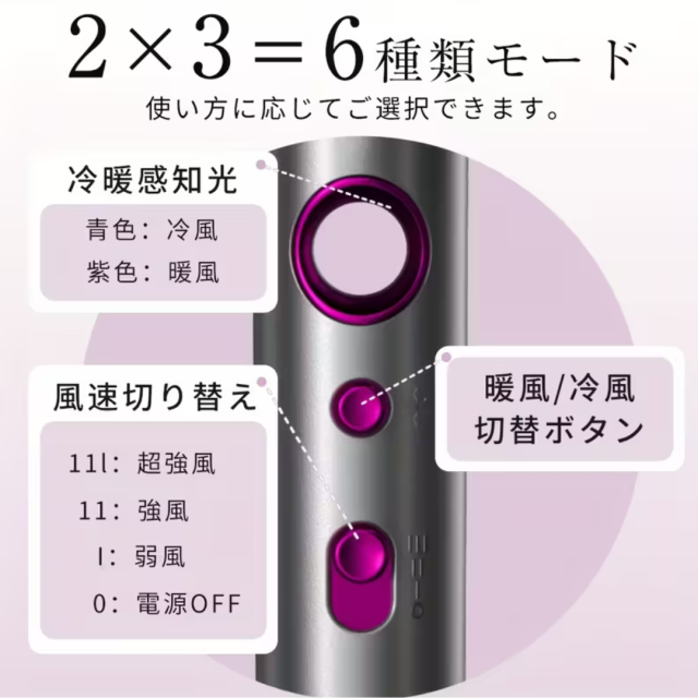 風量3段階 × 温冷切替で