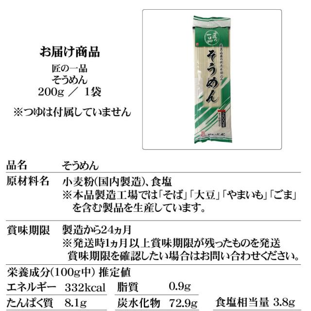匠の一品 [そうめん200g×2袋 BS] 200g×2袋 添加物不使用 山形県 城北麺工 お試し 送料無料 メール便 NP 即送