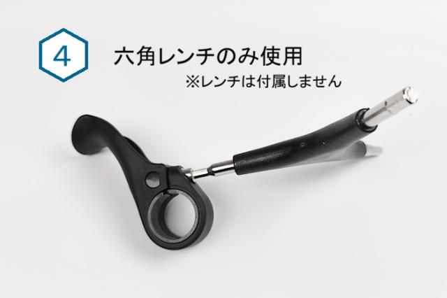 ・グリップを一度抜いたあと、本品を挿入、グリップを戻して4mmのアーレンキー(六角レンチ)で締めこみます。