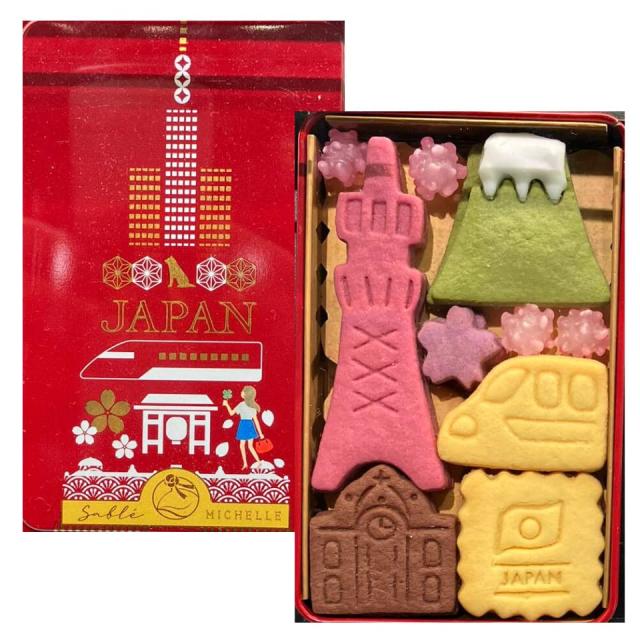 「商品情報」今や世界の人々が訪れる大都市、東京にミシェルがやってきました。現代的な高層ビルに新幹線などもすてきですが、雷門など日本らしい場所に興味津々です。東京から運良く見えた富士山の形をしたサブレがお気に入り。他にも東京タワーや桜など、日本らしいサブレを詰め合わせました。「主な仕様」各国の缶