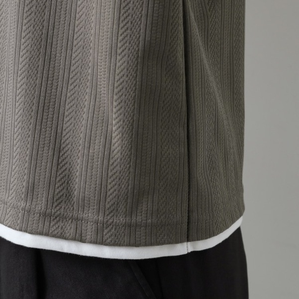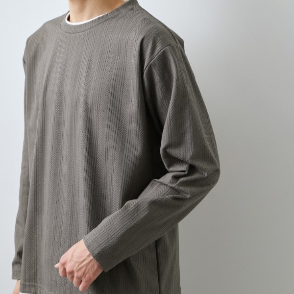 【程よく品のある着こなし】ジャカード フェイクレイヤード長袖Tシャツ 洗濯機OK