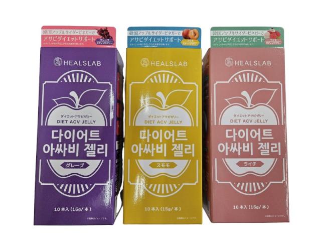【3種セット】ヒルズラボ ダイエットアサビゼリー 15g×10包 韓国 スティックタイプ アップルサイダービネガー りんご酢 血糖値コントロール 脂肪燃焼 グレープ ライチ スモモ お手軽 HEALSLAB 即日発送