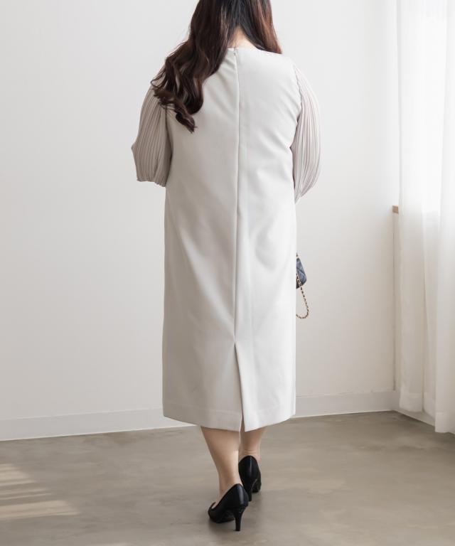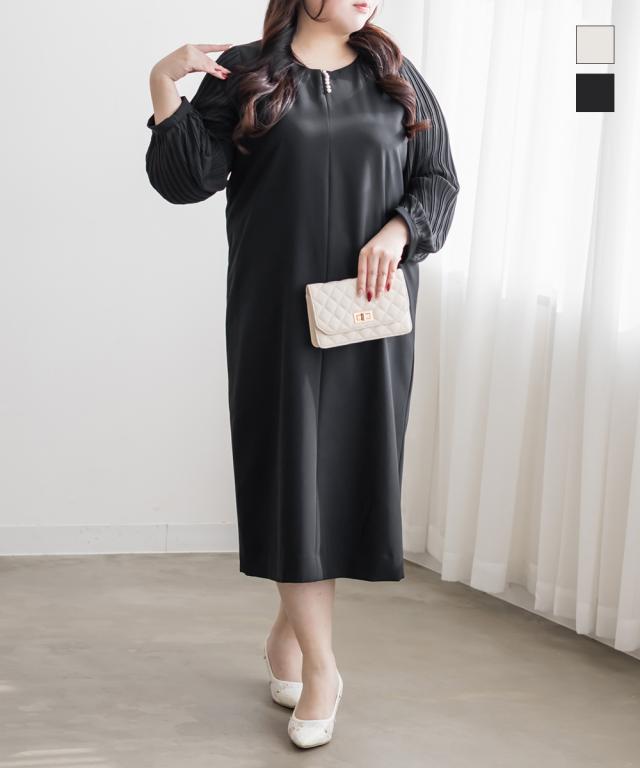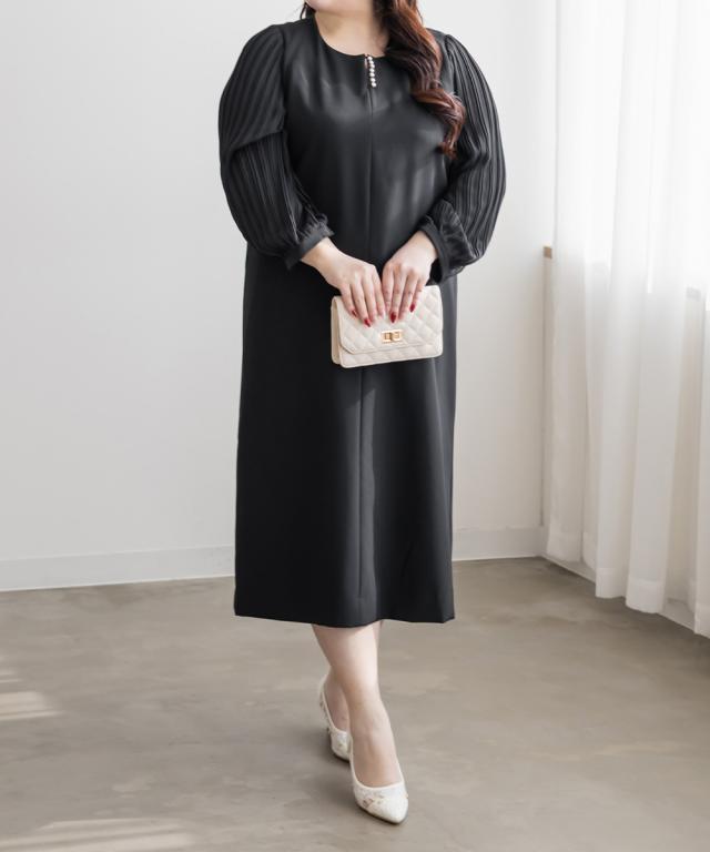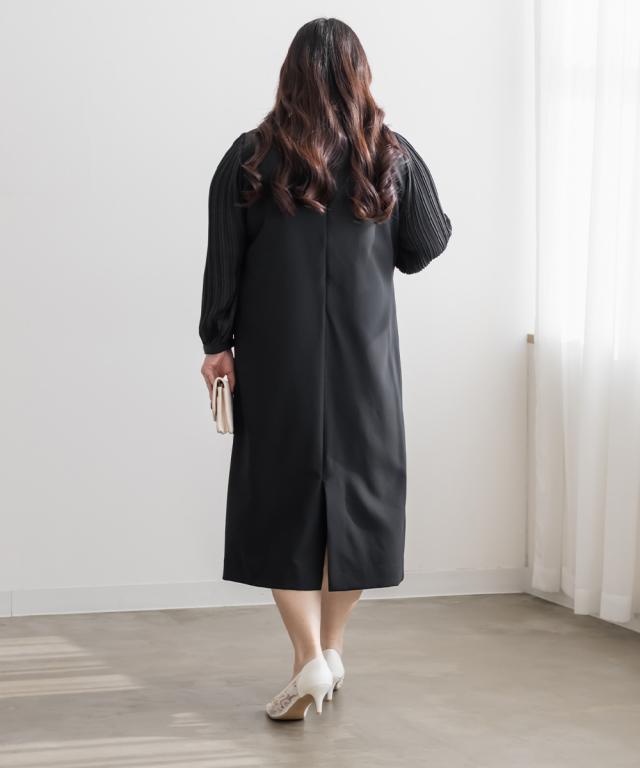 大きいサイズ/レディース/3L/4L/5L/袖プリーツシフォンワンピース