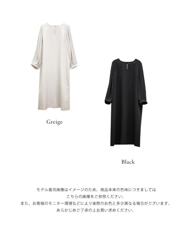 | 程よくしっかりとしたさらっとした柔らかな素材です。 袖のみ透け感のあるシフォン素材にプリーツ加工が施されています。 ※袖以外に、さらっとした裏地付き。 |