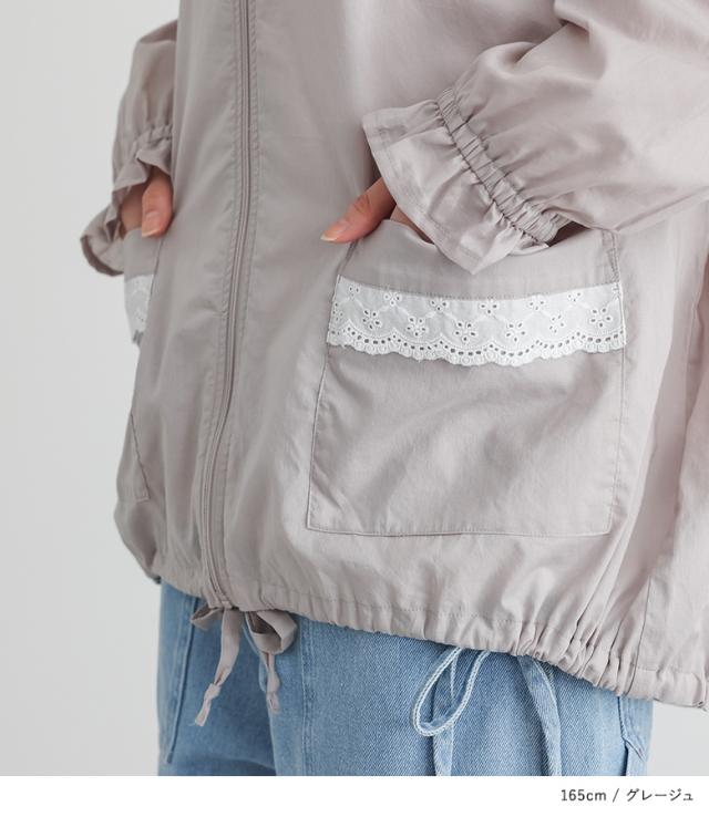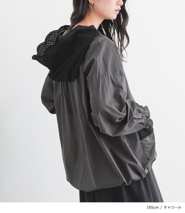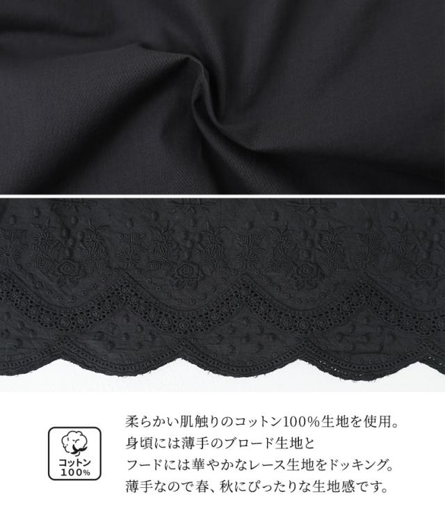 <春新作>『コットンレースフードパーカー』【メール便不可】【20】[パーカー 長袖 レディース トップス 羽織 薄手 フード付き フーディー レース 綿100% コットン100% ライトアウター 春 秋]