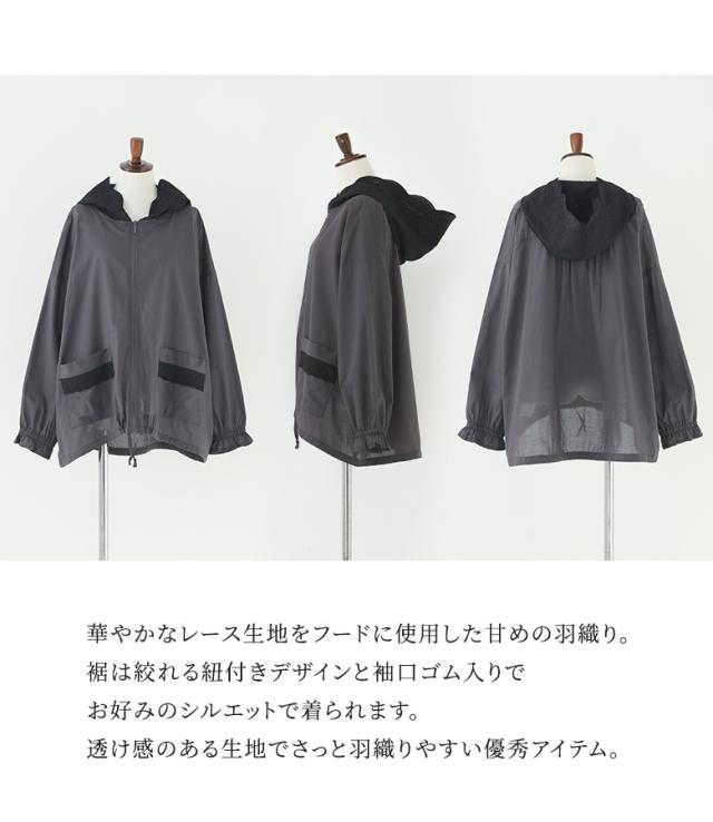 パーカー 長袖 レディース トップス 羽織 薄手 フード付き フーディー レース 綿100% コットン100% ライトアウター 春 秋 【TP】 羽織り ジップアップ 袖口ゴム ショート丈 ミディ丈 ミドル丈 配色 無地 透け感 レイヤード 重ね着 ポケット おうちで洗える ロングシーズン カジュアル レトロ クラシカル シンプル ナチュラル キレカジ フェミニン ガーリー ゆったり ゆる 楽ちん お尻が隠れる Sサイズ Mサイズ Lサイズ LLサイズ 3Lサイズ XLサイズ フリーサイズ ぽっちゃり 体型カバー 体形カバー 大きいサイズ プラスサイズ 10代 20代 30代 40代 50代 60代 低身長 高身長 女子会 通勤 通学 お買い物 お出掛け 旅行 リゾート おしゃれ お洒落 トレンド 流行 somari imagination ソマリイマジネーション 可愛い系 大人女子 大人可愛い お洒落可愛い 大人カジュアル 上品 きれいめ osharewalker オシャレウォーカー おしゃれうぉーかー ベージュ グレージュ グレー 灰色 チャコールグレー チャコール バイカラー[ID]11tp02b[somari imaginationコットンレースフードパーカー]