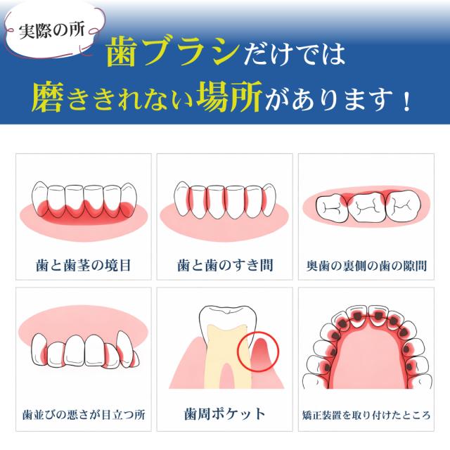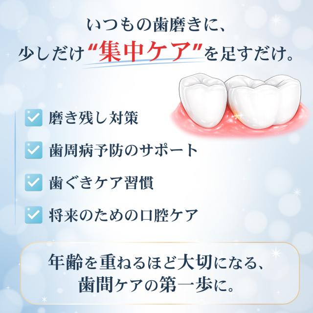 歯ブラシだけでは届きにくい部位のプラーク対応に。