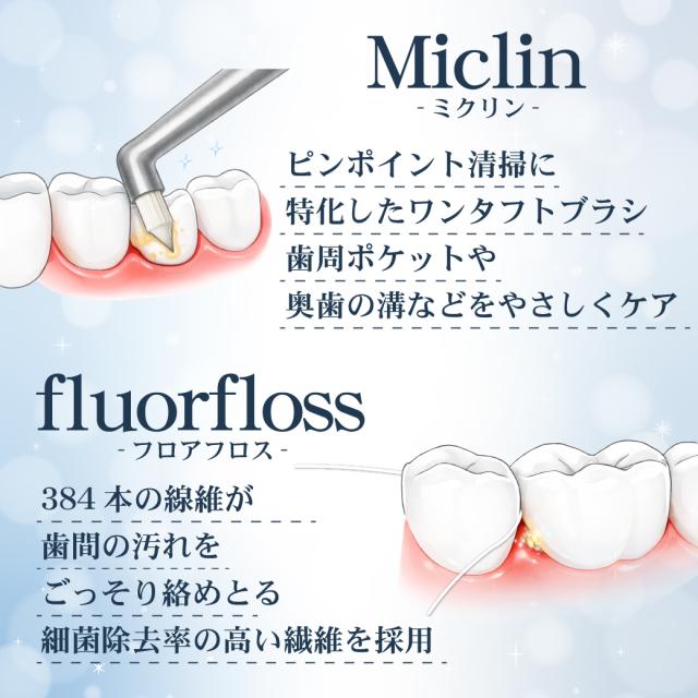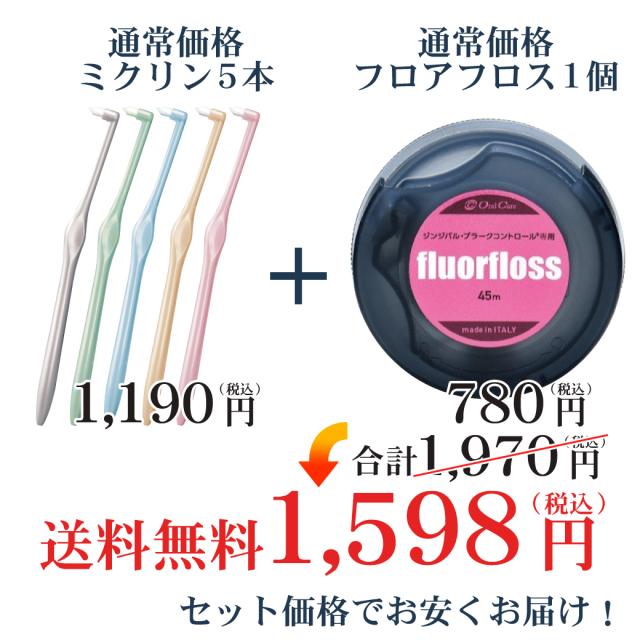 【メール便選択で送料無料】歯間集中ケアセット ワンタフト ミクリン 5本 + フロアフロス 45m 歯ぐきケア 歯周ケア 歯周ポケット対策
