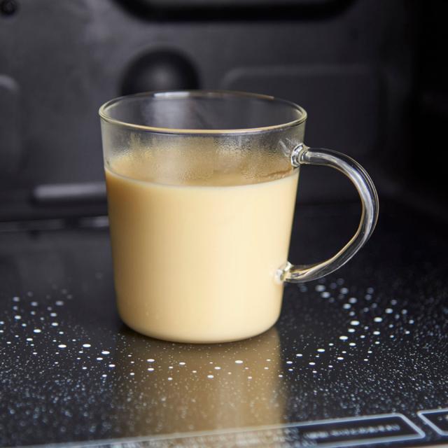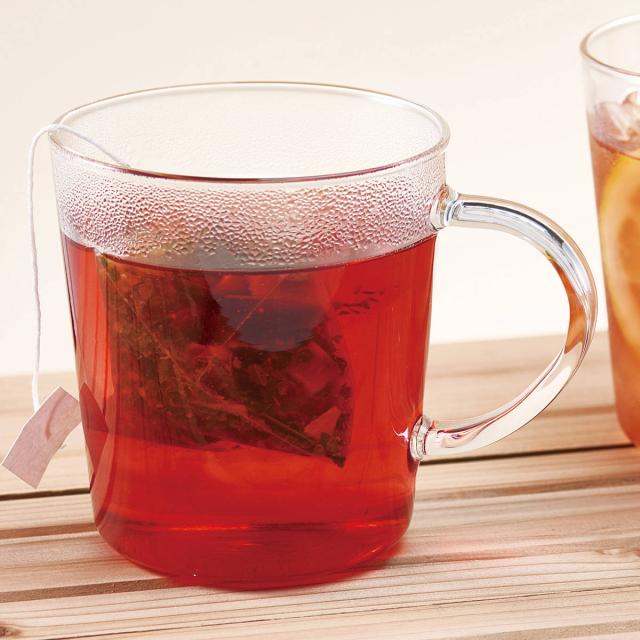 電子レンジ対応で、冷めた飲み物も手軽に温め直せます。耐熱ガラスはニオイや色移りがしにくく、いつでも清潔に使えます。食洗機対応でお手入れも簡単な、毎日使いにうれしい実用的なマグカップです。