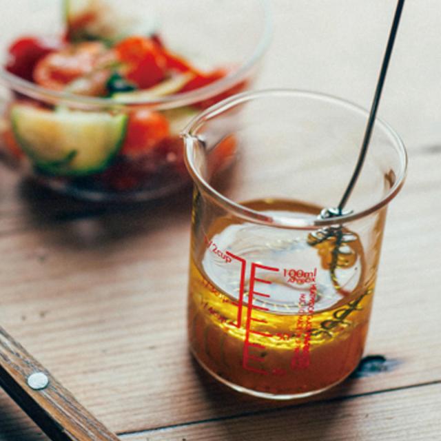 耐熱ガラス製のため、汚れやニオイが付きにくく、色移りもしにくいのが特長です。油分のある調味料やドレッシングを量った後も、すっきりと洗い流せて清潔にお使いいただけます。