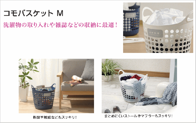 気軽に入れて持ち運べる柔らか素材のコモバスケット