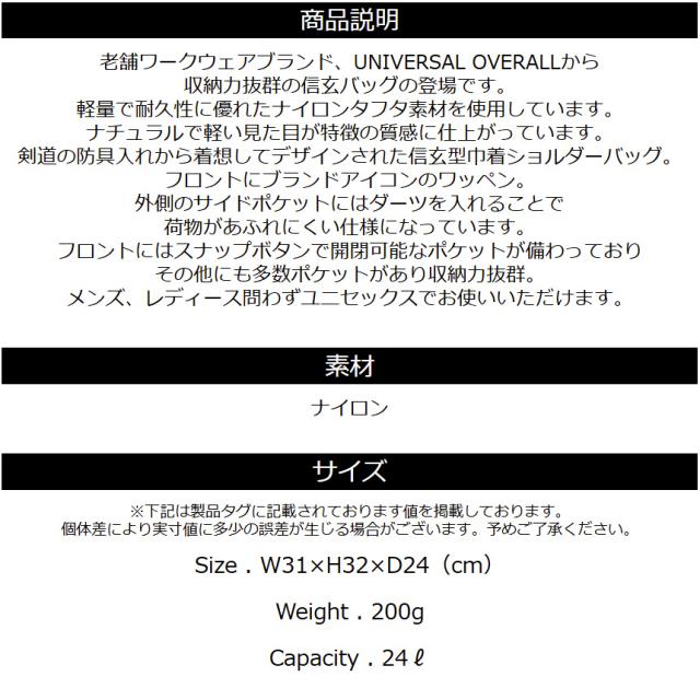 UNIVERSAL OVERALL ユニバーサルオーバーオール シンゲンブドウバッグ M 巾着トートバッグ ショルダーバッグ 24L ブランド 【N1-1561】 送料無料 通販A3