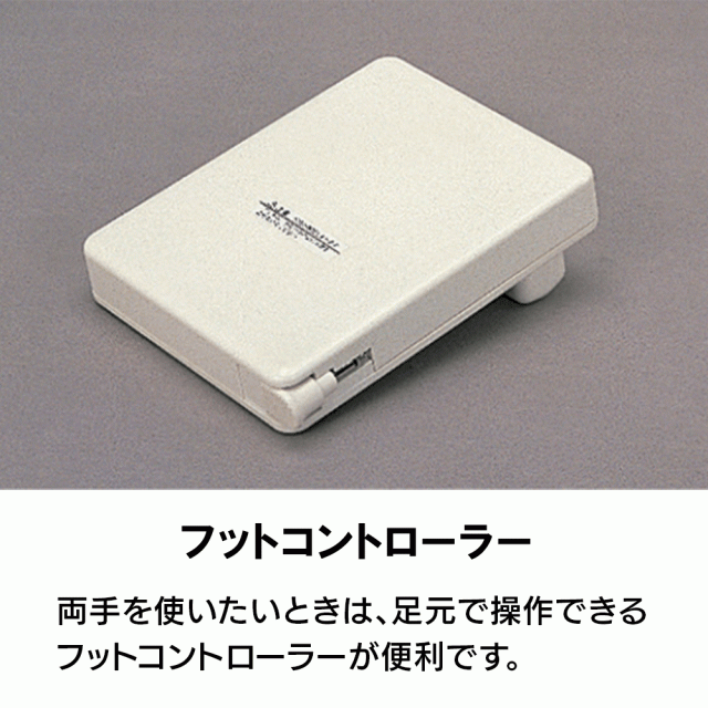 ボビン、専用ドライバー、ミシンブラシ、シームリッパー、針セット、糸こま押さえ大・小、補助糸立て棒、基本押さえ、ファスナー押さえ、サテン押さえ、まつりぬい押さえ、たち目かがり押さえ、ふちかがり押さえ、ボタンホール押さえ、ボタンホール安定板、安定板ホルダー、取扱説明