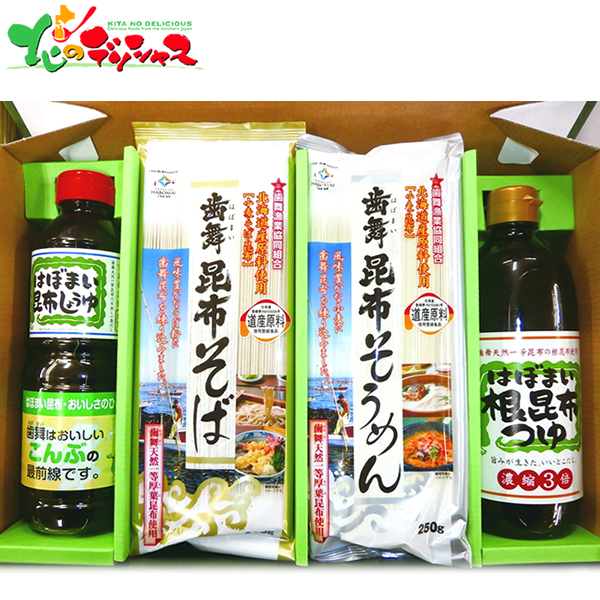 | 商品内容 | ■はぼまい昆布しょうゆ・はぼまい根昆布つゆ/各500ml、歯舞昆布そば・歯舞昆布そうめん/各250g×各3 ※パッケージ・仕様・成分などは予告なく変更になる場合がございます。なお、旧商品在庫がなくなり次第、リニューアル品(新商品)での発送となる場合もあります。その場合はどうぞご了承下さいませ。 |