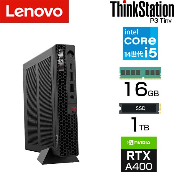 lenovo 超小型 ワークステーション ThinkStation P3 Tiny intel Core i5 14400 メモリ 16GB SSD 1TB NVIDIA RTX A400 Windows11 Pro 有線LAN デスクトップパソコン PC レノボ