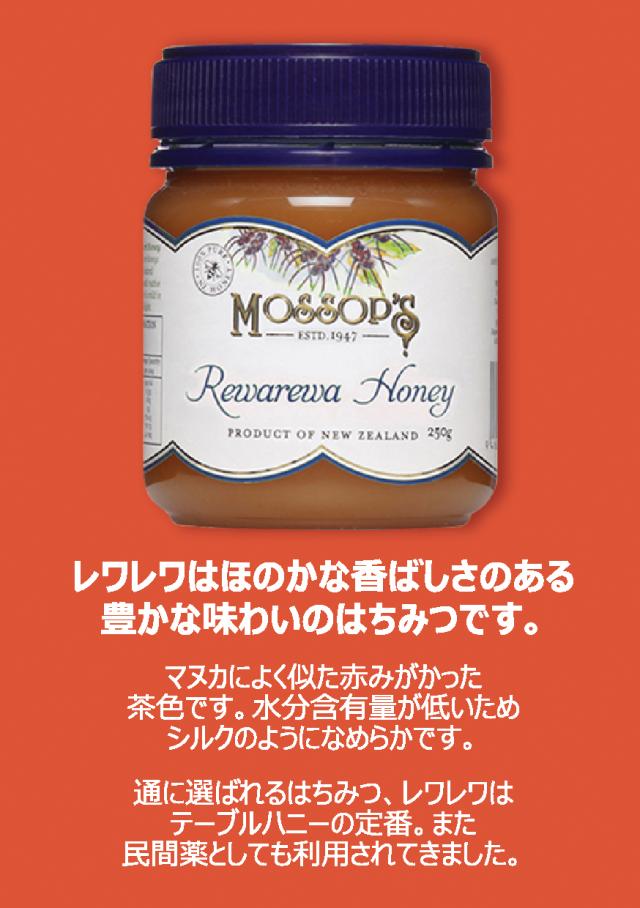 ◆レワレワはちみつはほのかな香ばしさのある、豊かな味わいのはちみつです。マヌカによく似た赤みがかった茶色です。レワレワ(マオリ名)はニュージーランド固有の木です。レワレワは『NZの薬用植物 』(1987)という書物の中で、薬草として紹介されています。