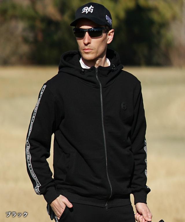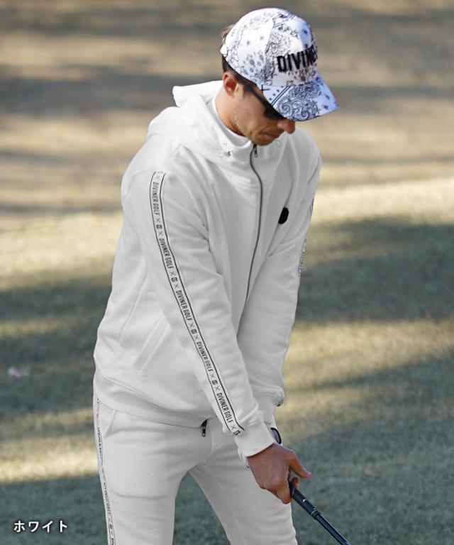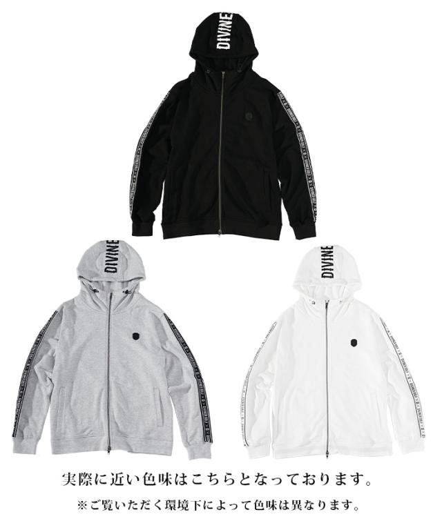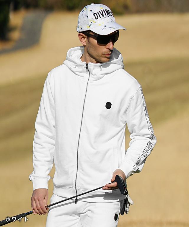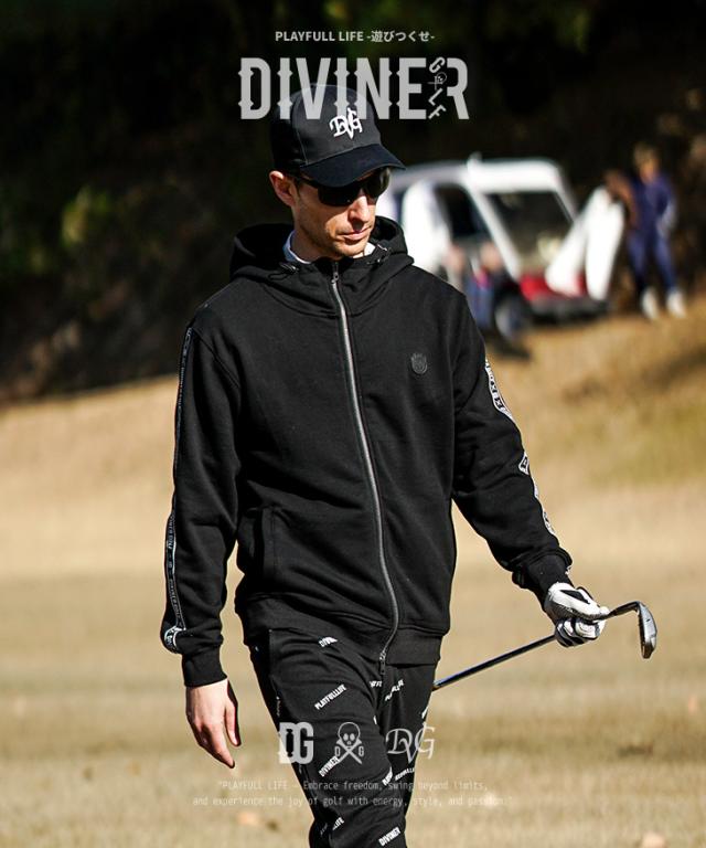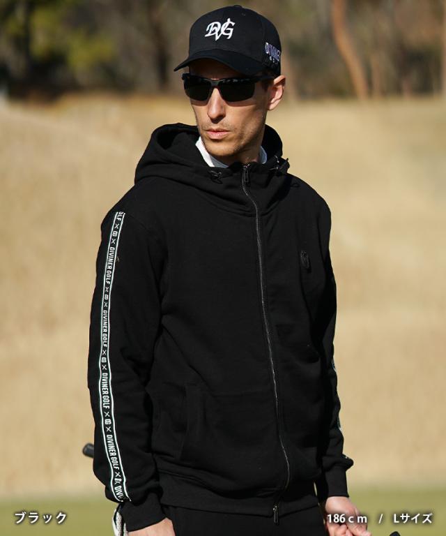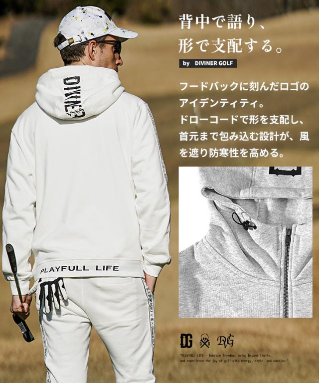【DIVINER GOLF】 ゴルフウェア メンズ パーカー 裏毛 ロゴ ゴルフ スウェット ジップアップパーカー メンズ ビッグシルエット ダブルジップ ライトアウター 裾ロゴ サイドライン 大きいサイズ XL XXL ブラック グレー ホワイト JOKER ジョーカー ディバイナーゴルフ