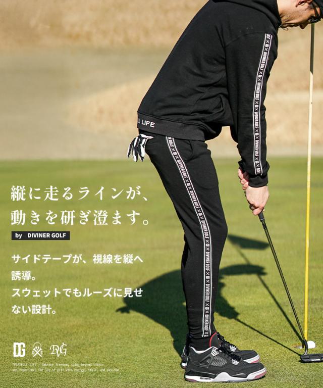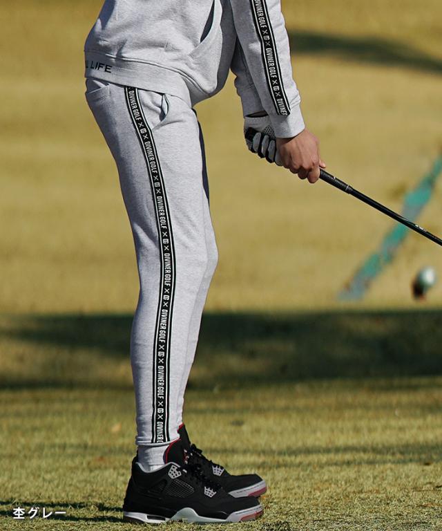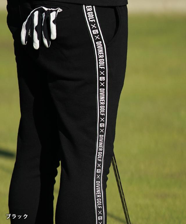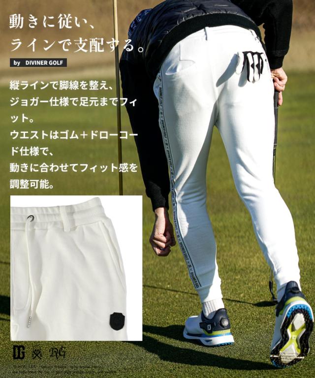【DIVINER GOLF】 ゴルフウェア メンズ ジョガーパンツ 裏毛 ロゴ ゴルフ スウェット ロングパンツ メンズ タイト スリム サイドライン スウェットパンツ 裾リブ 大きいサイズ XL XXL ブラック グレー ホワイト JOKER ジョーカー ディバイナーゴルフ