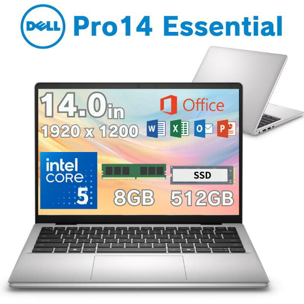 Dell 14型 ノートパソコン Dell Pro 14 essential CPU intel Ore 5 120U メモリ 8GB SSD 512GB Microsoft Office Home & Business 2024 付き 頑丈 持ち運び デル ノートPC 新品 NBLA152-001H1