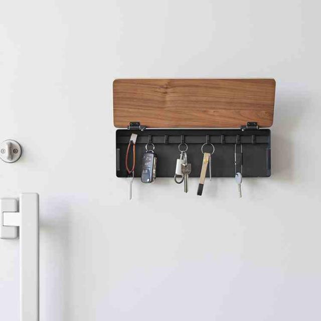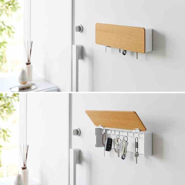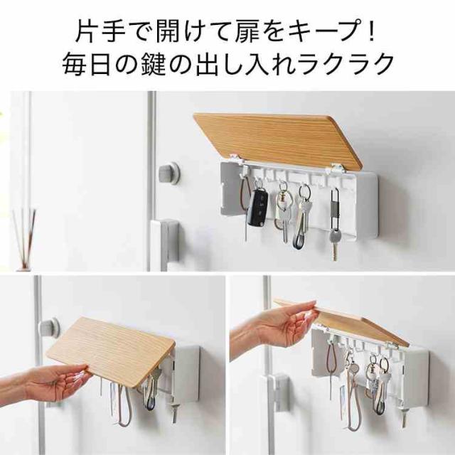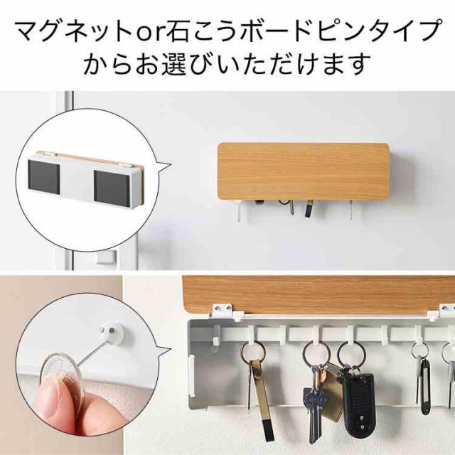 山崎実業 マグネットキーフック 壁付けキーフック ロング リン 公式 RIN 10606 10607 10608 10609 ブラウン ナチュラル キーフック 鍵 収納 ボックス ケース キーボックス 玄関収納 浮かせる おしゃれ シンプル ウッド 壁面 磁石 石こうボードピン 目隠し 扉付き 玄関扉 カギ