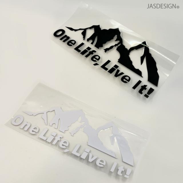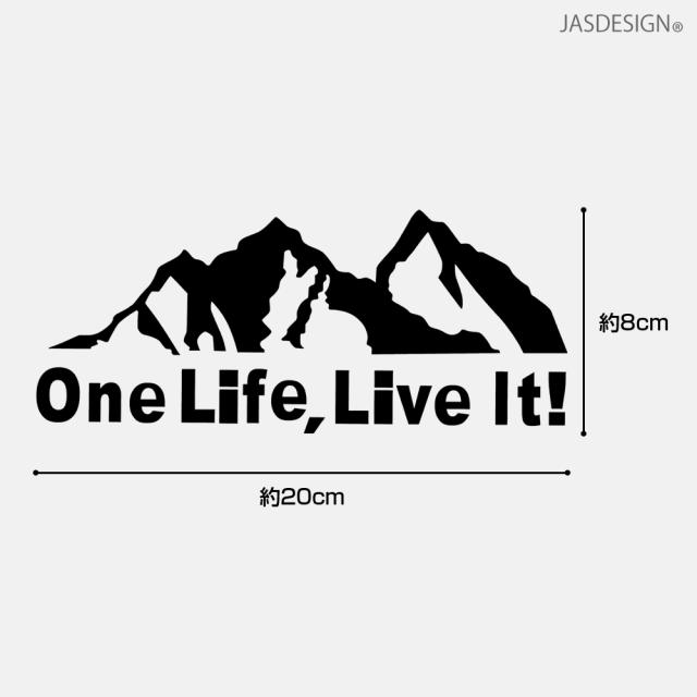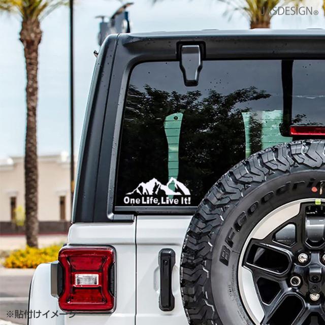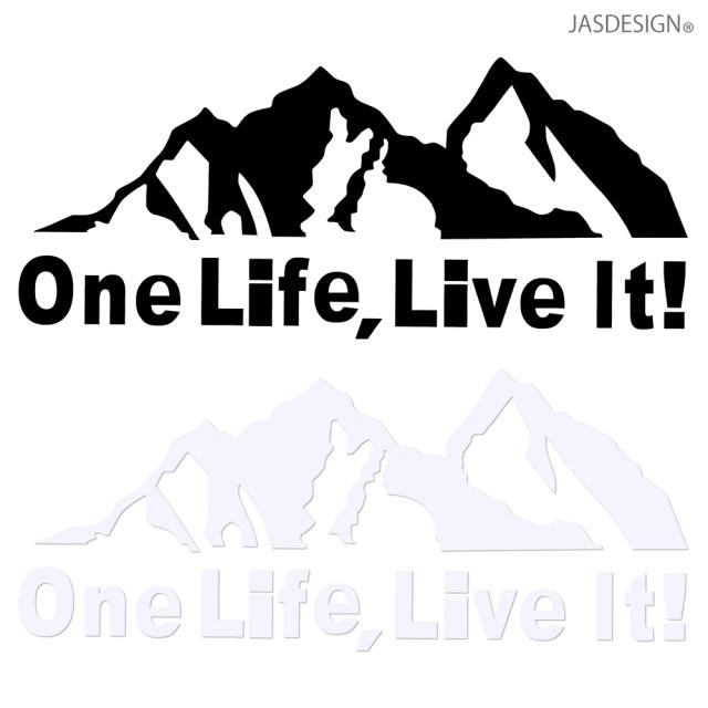 カーステッカー 車 ステッカー シール アウトドア キャンプ 山 山登り ロゴ バイク 傷隠し カッティング ドレスアップ カスタム マウンテン オフロード 釣り One Life Live It 送料無料 JM-459