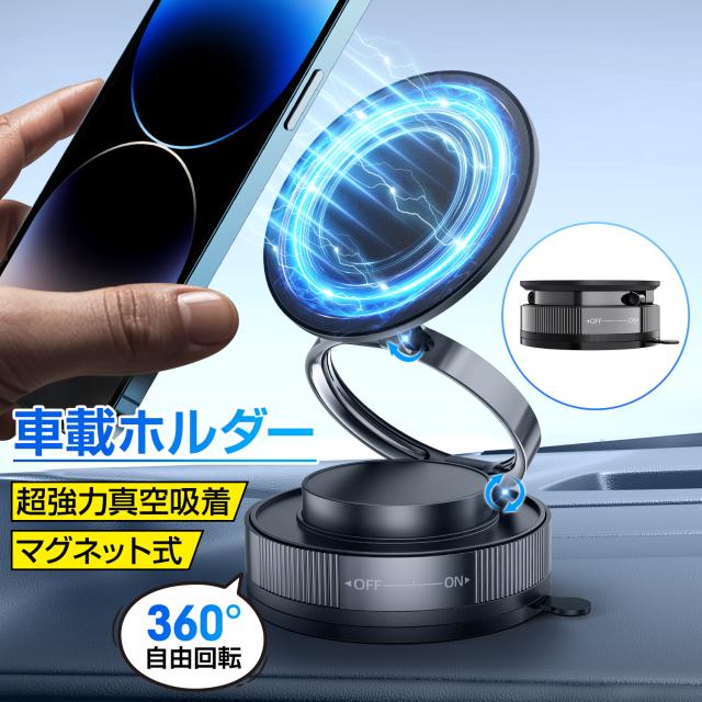 【業界革新 どこでも吸着】 スマホスタンド 車 マグネット 真空吸着式 スマホ ホルダー 携帯スタンド 車載 ホルダー 吸盤 スマホホルダー 片手操作 置くだけ 固定 車載ホルダー マウント 360度回転 スマホスタンド 車用 iPhone/Android 多機種対応