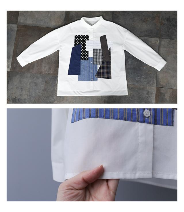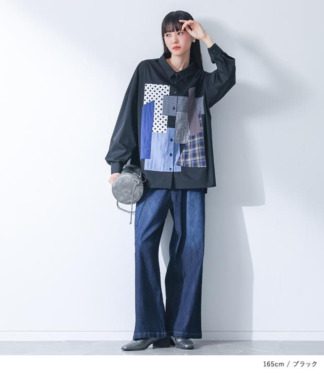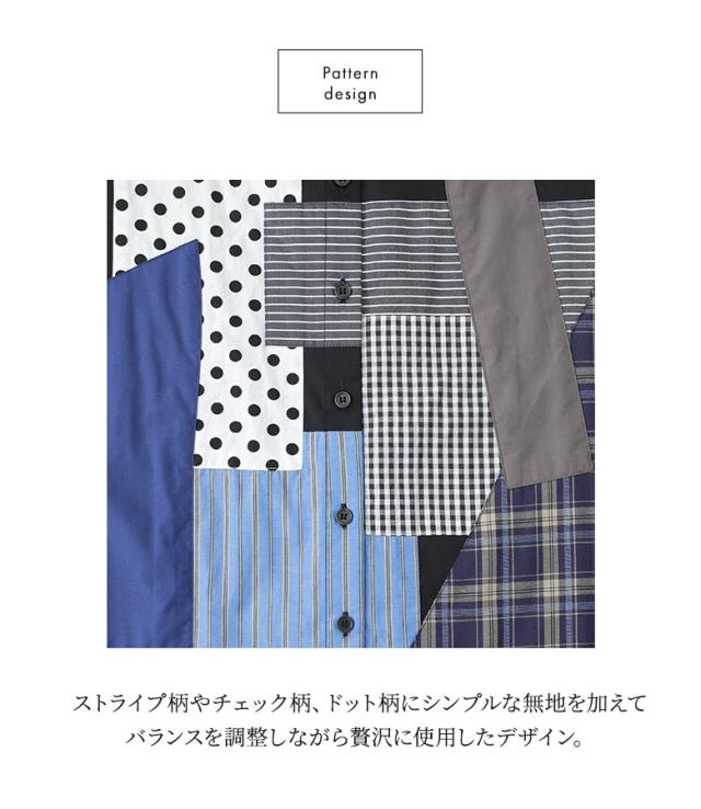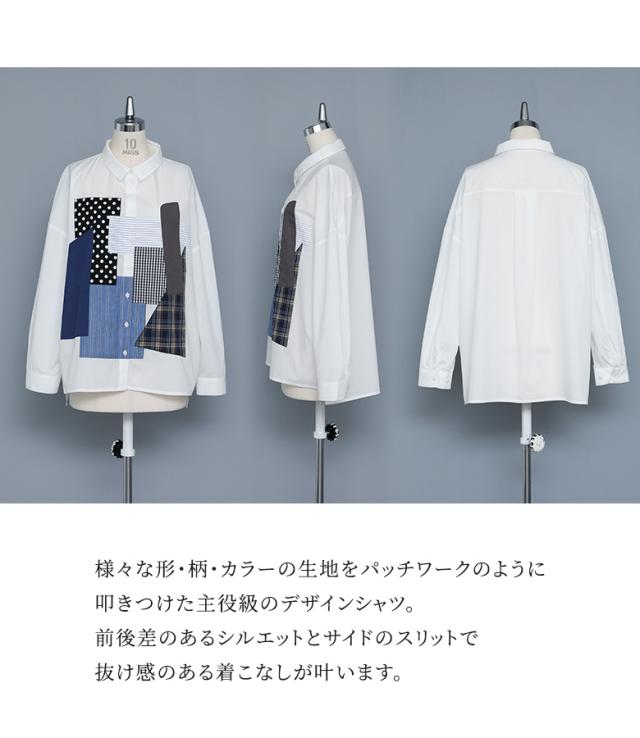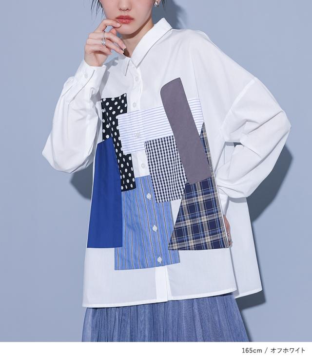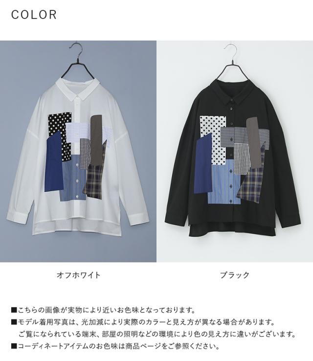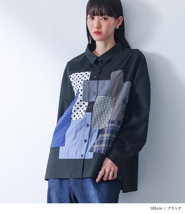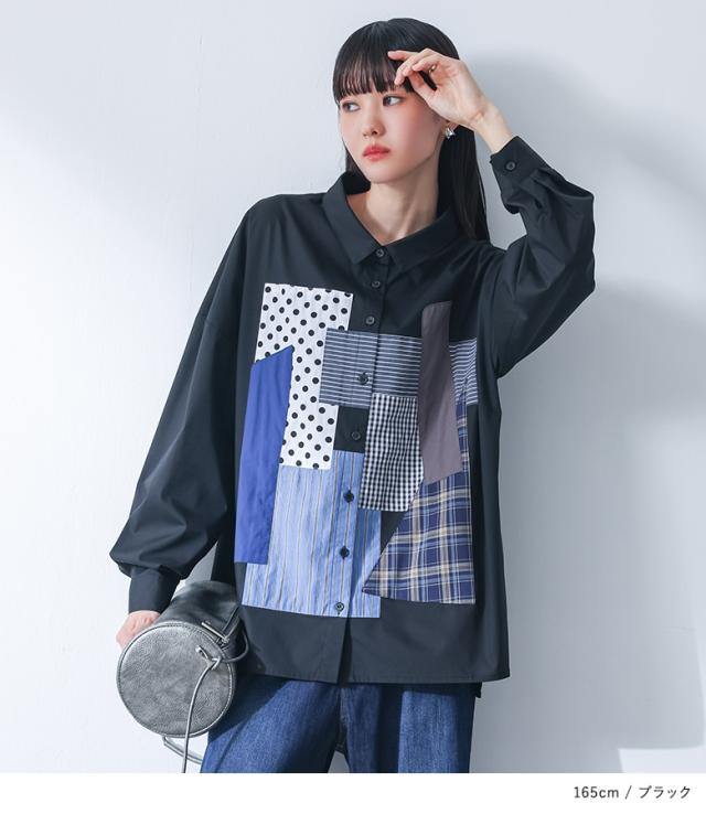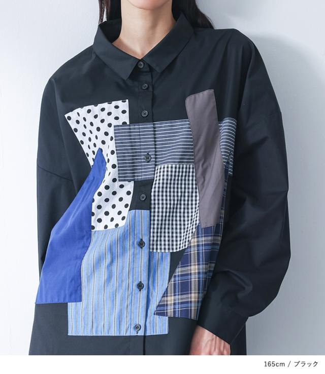 シャツ 長袖 レディース トップス パッチワーク 羽織 ブラウス 襟付き 無地 ストライプ柄 チェック柄 ドット柄 綿混 スリット デザインシャツ ゆったり 春 秋 【TP】 ボタンシャツ 前開きシャツ 襟付きシャツ 柄シャツ ホワイト 白 オフホワイト ショート丈 ミディ丈 ミドル丈 ドロップショルダー 水玉柄 配色 コットン混 おうちで洗える 冬 ロングシーズン カジュアル シンプル モード マニッシュ キレカジ フェミニン ゆる 楽ちん お尻が隠れる Sサイズ Mサイズ Lサイズ LLサイズ 3Lサイズ XLサイズ フリーサイズ ぽっちゃり 体型カバー 体形カバー 大きいサイズ プラスサイズ 10代 20代 30代 40代 50代 60代 低身長 高身長 女子会 オフィス 通勤 通学 お買い物 お出掛け 旅行 リゾート レジャー おしゃれ お洒落 トレンド 流行 kOhAKU コハク 大人女子 大人可愛い お洒落可愛い 大人カジュアル ラフ スタイリッシュ 洗練 エッジィ 上品 きれいめ かっこいい osharewalker オシャレウォーカー おしゃれうぉーかー ブラック 黒[ID]11tp02d[kOhAKUパッチワークシャツ]