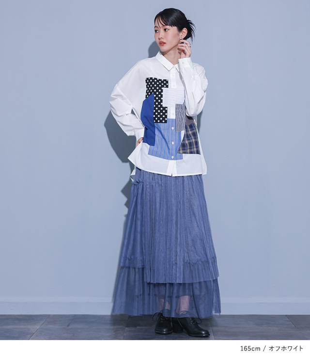 1,000円オフ4日0時迄 <春新作>『パッチワークシャツ』【メール便不可】【20】[シャツ 長袖 レディース トップス パッチワーク 羽織 ブラウス 襟付き 無地 ストライプ柄 チェック柄 ドット柄 綿混 スリット デザインシャツ ゆったり 春 秋]
