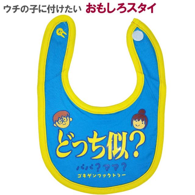 おもしろ よだれかけ どっち似? パパ ママ 綿100% 出産祝い 赤ちゃん 男の子 女の子 お祝い プレゼント ゴキゲン ファクトリー メール便送料無料