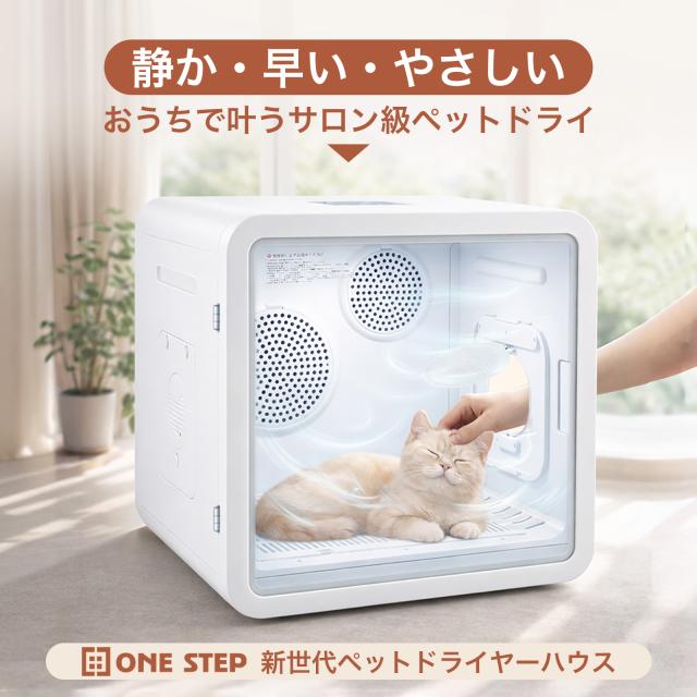 シャワー後のペットをやさしくムラなく乾かせる、箱型ペットドライヤーハウス。