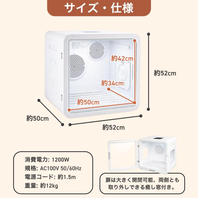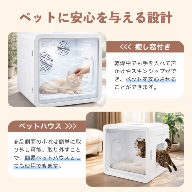 2026年最新 ペットドライヤー ハウス ボックス 犬 猫 大風量 なでなで窓 多頭飼い対応 82L 静音 速乾 風量調整 温度調節 ペット用ドライヤー 1年保証