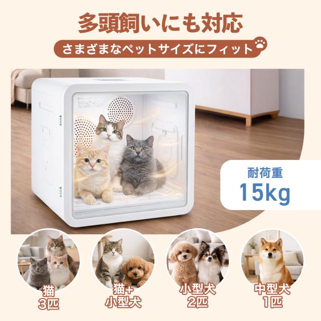 猫や小型犬を2・3匹一緒に乾かす事も可能!