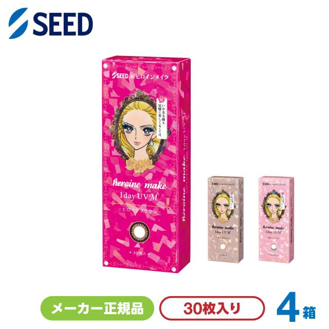 ヒロインメイクワンデーUV M 4箱 (30枚入り) シード カラコン ヒロインメイク 1日使い捨て ヒロインブラウン 度あり 度なし カラーコンタクト ソフト