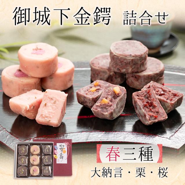 御城下金鍔詰合せ【春三種】9個入(大納言・栗・桜)/小豆/大納言/さくら/クリ/餡/高級/金つば/和菓子/贈答/双松庵唯七/